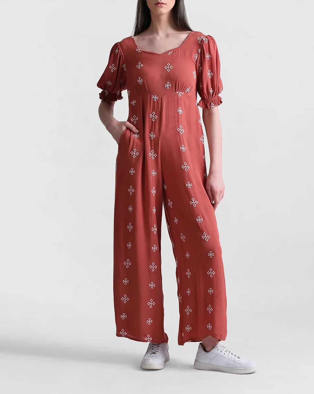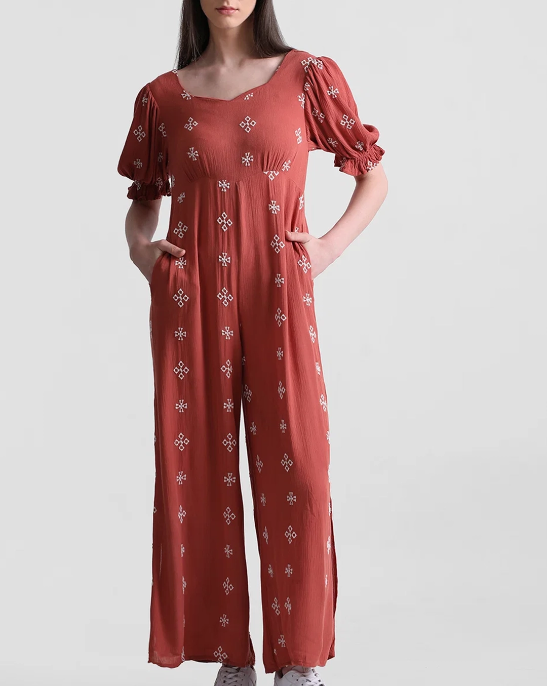 Brown Floral Embroidered Jumpsuit 36364