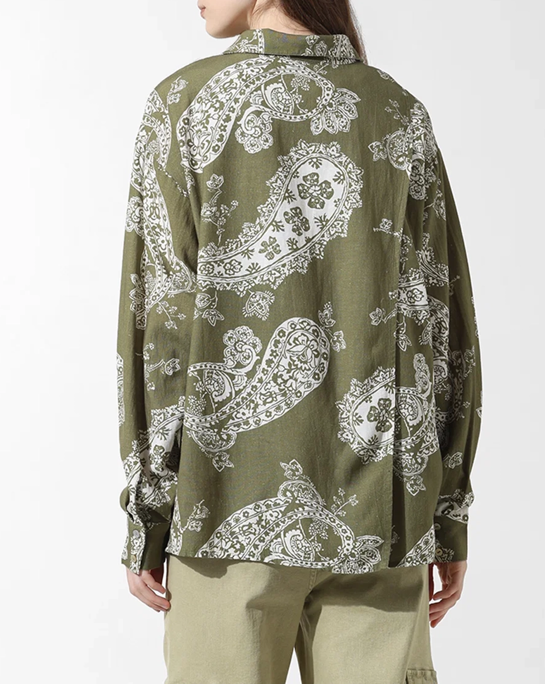 Green Printed Oversized Co-ord Set Shirt
