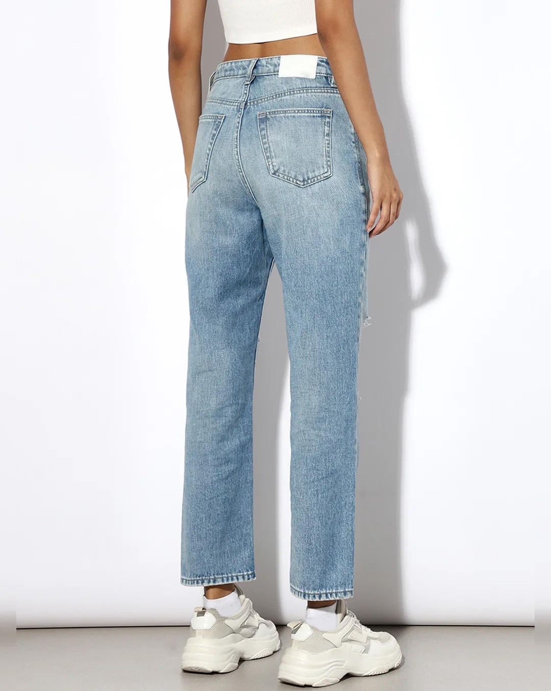 Light Blue Distressed Straight Fit Jeans